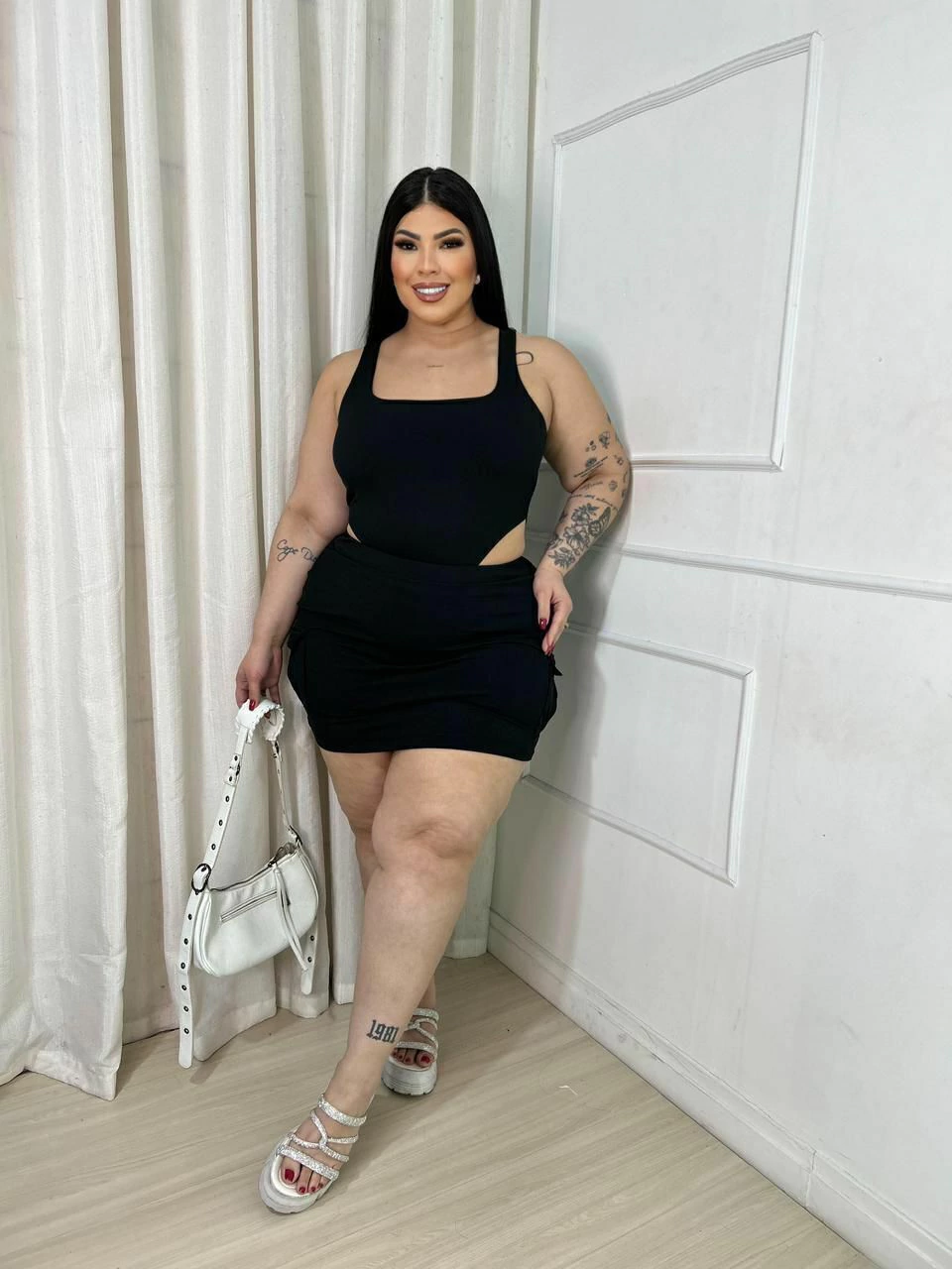 O Conjunto May é confeccionado em tecido canelado suplex de alta qualidade, oferecendo conforto, elasticidade e durabilidade. Sua modelagem ajustada valoriza as curvas com caimento perfeito, garantindo liberdade de movimento e um visual moderno. Ideal para o dia a dia ou ocasiões casuais, o conjunto une praticidade e estilo em uma peça versátil e sofisticada.